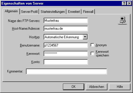 ändern. Das Felder "Konto" ist leer zu lassen, bei